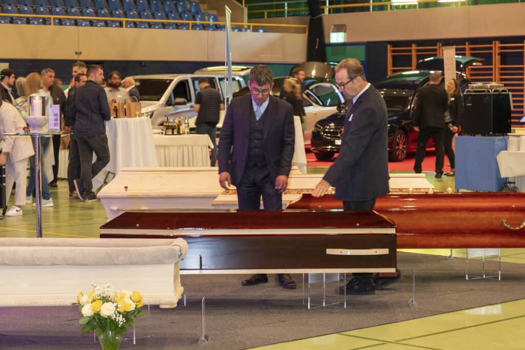 Einige Bestattungsunternehmen haben einen Ausstellungsraum, wo Sie die vielfältigen Bestattungsartikel auswählen können.